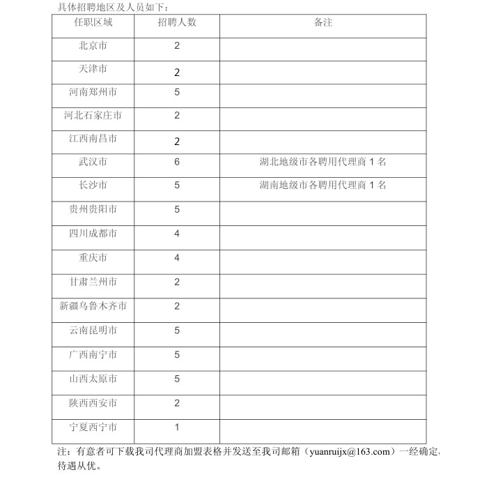 为满足我司快速发展的销售趋势、开拓新兴市场,现特招聘一批加盟、代理人员。